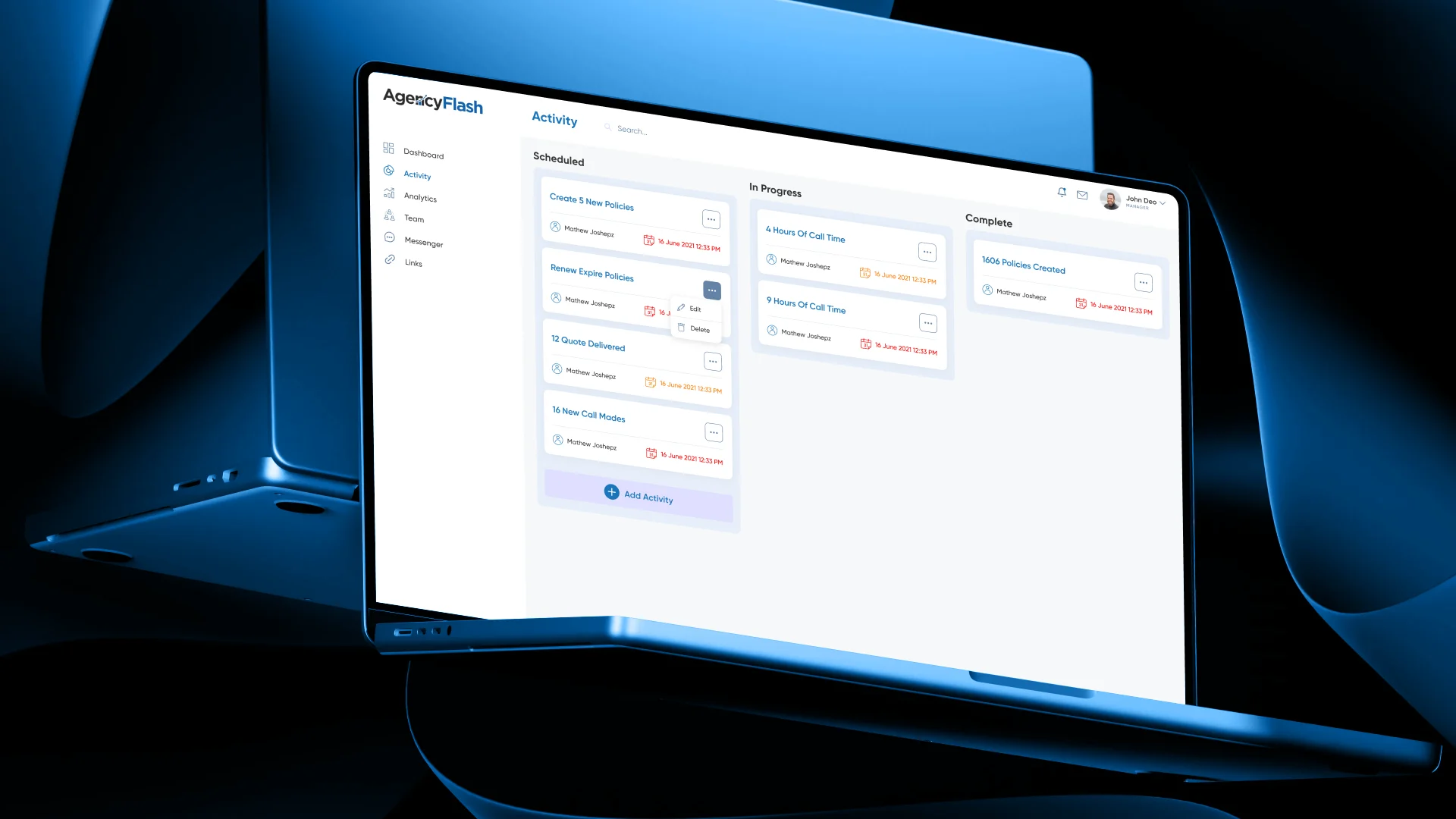 This focus ensures managers can quickly interpret crucial data like Team Stats and Agency Intelligence without distraction, making the dashboard feel powerful yet effortless to use.