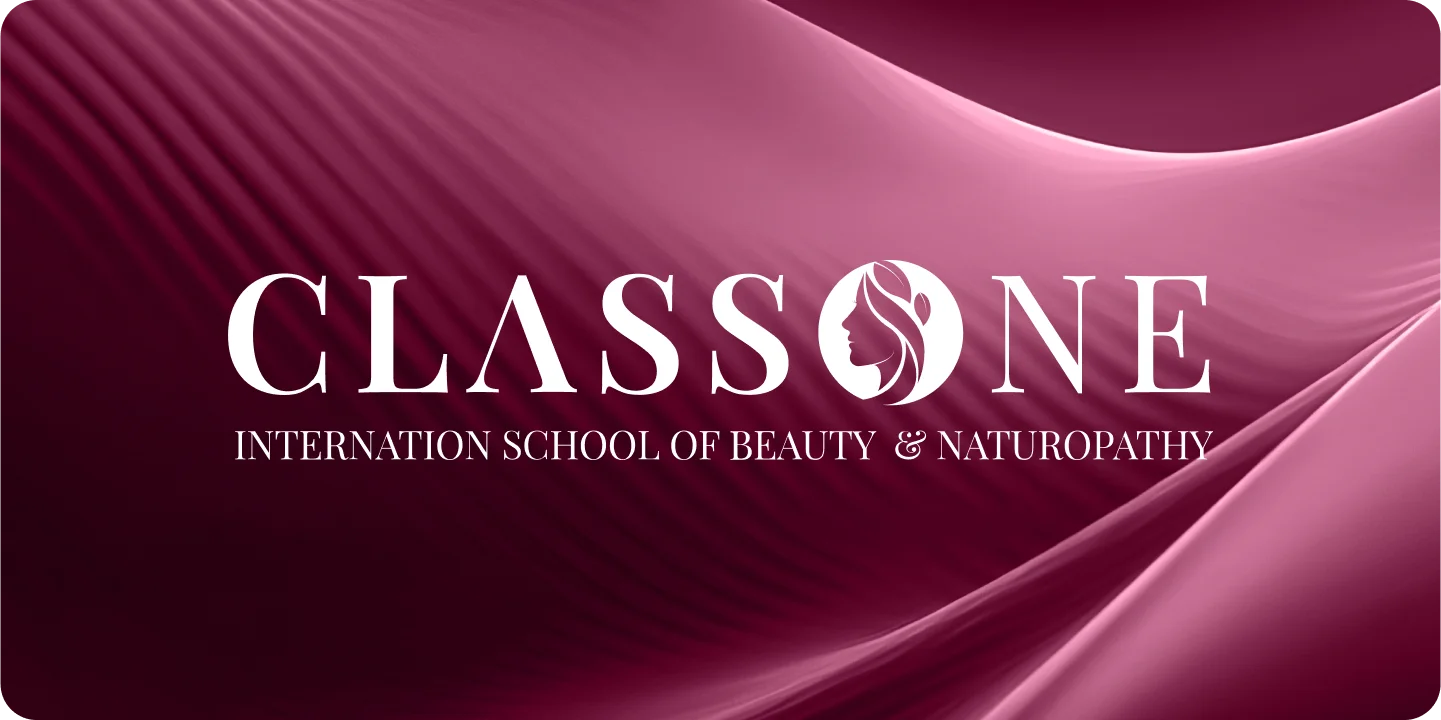 The Class One branding establishes a tone of international elegance and holistic expertise. The visual identity, centered on the sophisticated woman face icon and strong wordmark, communicates a commitment to high-quality education in both aesthetic and natural health fields. This consistent, refined look positions the school as a premier, professional institution in the global beauty and wellness industry.